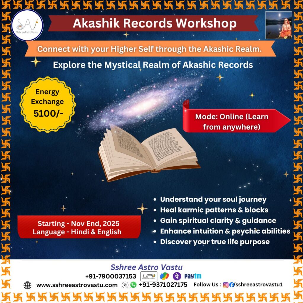 आकाशिक रिकॉर्ड्स इन प्रश्नों के उत्तर खोलते हैं। यदि आप भी अपनी आत्मा के रहस्यों को जानना चाहते हैं, तो यह वर्कशॉप आपके लिए एक दिव्य अवसर है।