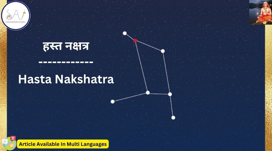 हस्त नक्षत्र वैदिक ज्योतिष में 27 नक्षत्रों में 13वाँ नक्षत्र है, जो कन्या राशि में 10° से 23°20′ तक फैला हुआ है। खगोलीय दृष्टिकोण से, यह नक्षत्र तारामंडल “कॉर्वस” (Corvus) में स्थित है और इसमें पाँच प्रमुख तारे शामिल हैं: α Alchiba, β Kraz, γ, δ Algorab, और ε Minkar Corvi। ये तारे एक “हाथ” या “मुट्ठी” की आकृति बनाते हैं, जिसके कारण इसका नाम “हस्त” पड़ा।