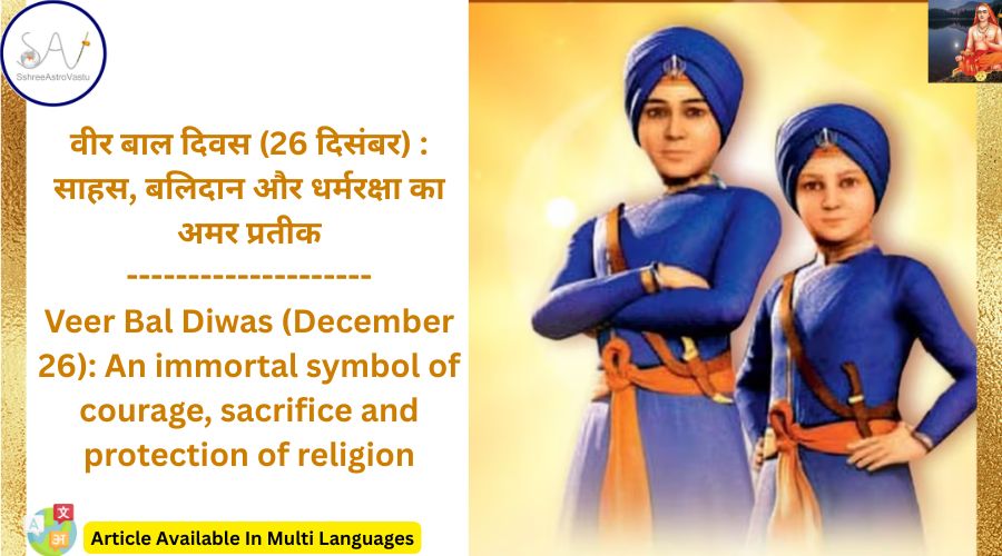 भारत की धरती वीरों और बलिदानियों की धरती रही है। इस पावन भूमि पर ऐसे अनेक महापुरुष और वीर बालक जन्मे, जिन्होंने बहुत कम आयु में भी असाधारण साहस, अटूट श्रद्धा और अदम्य आत्मबल का परिचय दिया। इन्हीं अमर बाल वीरों की स्मृति में भारत सरकार द्वारा 26 दिसंबर को वीर बाल दिवस मनाया जाता है। यह दिवस विशेष रूप से दसवें सिख गुरु, श्री गुरु गोबिंद सिंह जी महाराज के छोटे साहिबजादों — साहिबजादा बाबा जोरावर सिंह जी (9 वर्ष) और साहिबजादा बाबा फतेह सिंह जी (7 वर्ष) — के अद्वितीय बलिदान को समर्पित है।