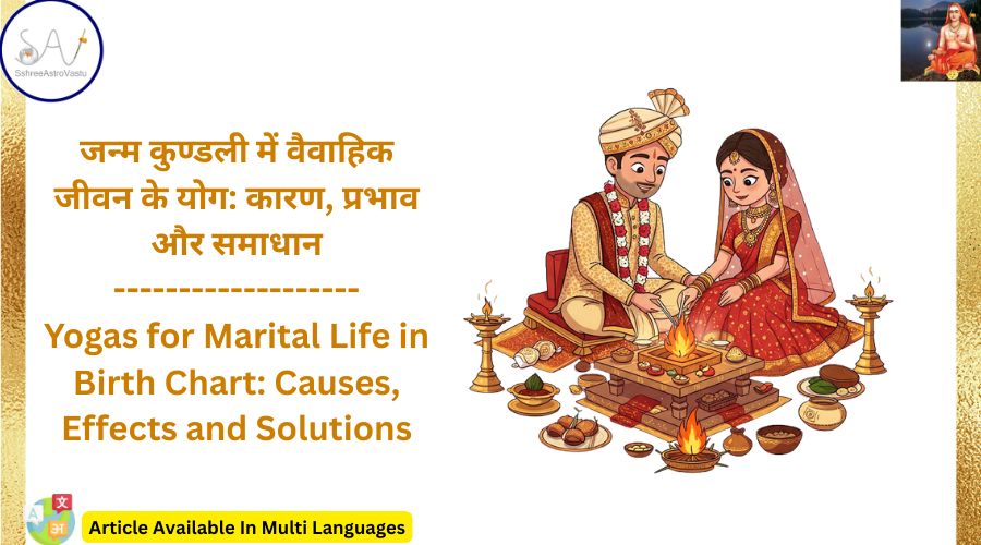 जन्म कुण्डली में विवाह के आंकलन के लिए सप्तम भाव को मुख्य भाव माना जाता है. जब सप्तम भाव पर पाप ग्रहो का प्रभाव होता है तब दाम्पत्य जीवन में परेशानियो का सामना करना पड़ता है. इसी तरह से यदि सप्तमेश पर पाप ग्रहों का प्रभाव ज्यादा होता है तब भी दाम्पत्य जीवन में बाधाओं का सामना करना पड़ता है. जन्म कुण्डली का दूसरा भाव कुटुम्ब भाव माना जाता है इसलिए इसका पीड़ित होना भी वैवाहिक संबंधो के लिए अच्छा नही माना जाता है. जन्म कुण्डली का आठवाँ भाव मांगलिक सुख का माना जाता है. यदि इस भाव में पाप ग्रह हों तब यह भी दाम्पत्य जीवन के मांगल्य को खराब करता है.