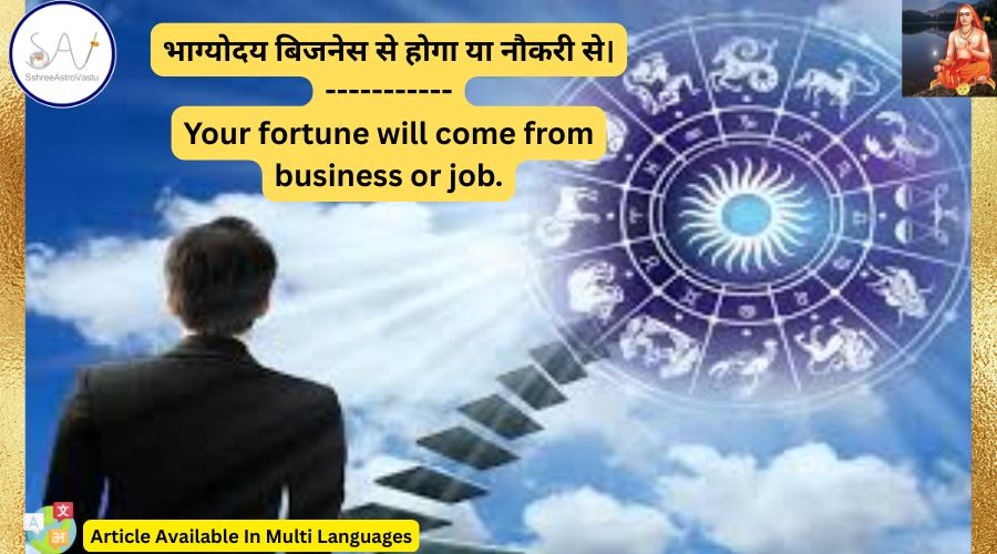 अब कुंडली का धन भाव(दूसरा भाव)ग्यारहवा भाव(धन लाभ भाव)और दसवाँ भाव(रोजगार भाव) औऱ बिजनेस ग्रह बुध कन्या या मिथुन राशि मे है या सूर्य के साथ बुध है या प्रथम भाव मे बैठा है या अन्य तरह से बलि है साथ ही 9वा भाव(भाग्य का भाव)राजयोग या अच्छी स्थिति में है तब बिजनेस से ही भाग्योदय होगा ऐसी स्थिति में नौकरी कभी भी भाग्योदय नही करेगी, नौकरी कर रहे है तब ऐसी स्थिति में कुंडली अनुसार बिजनेस करने से भाग्योदय होकर भाग्योदय के फल मिलेंगे।।